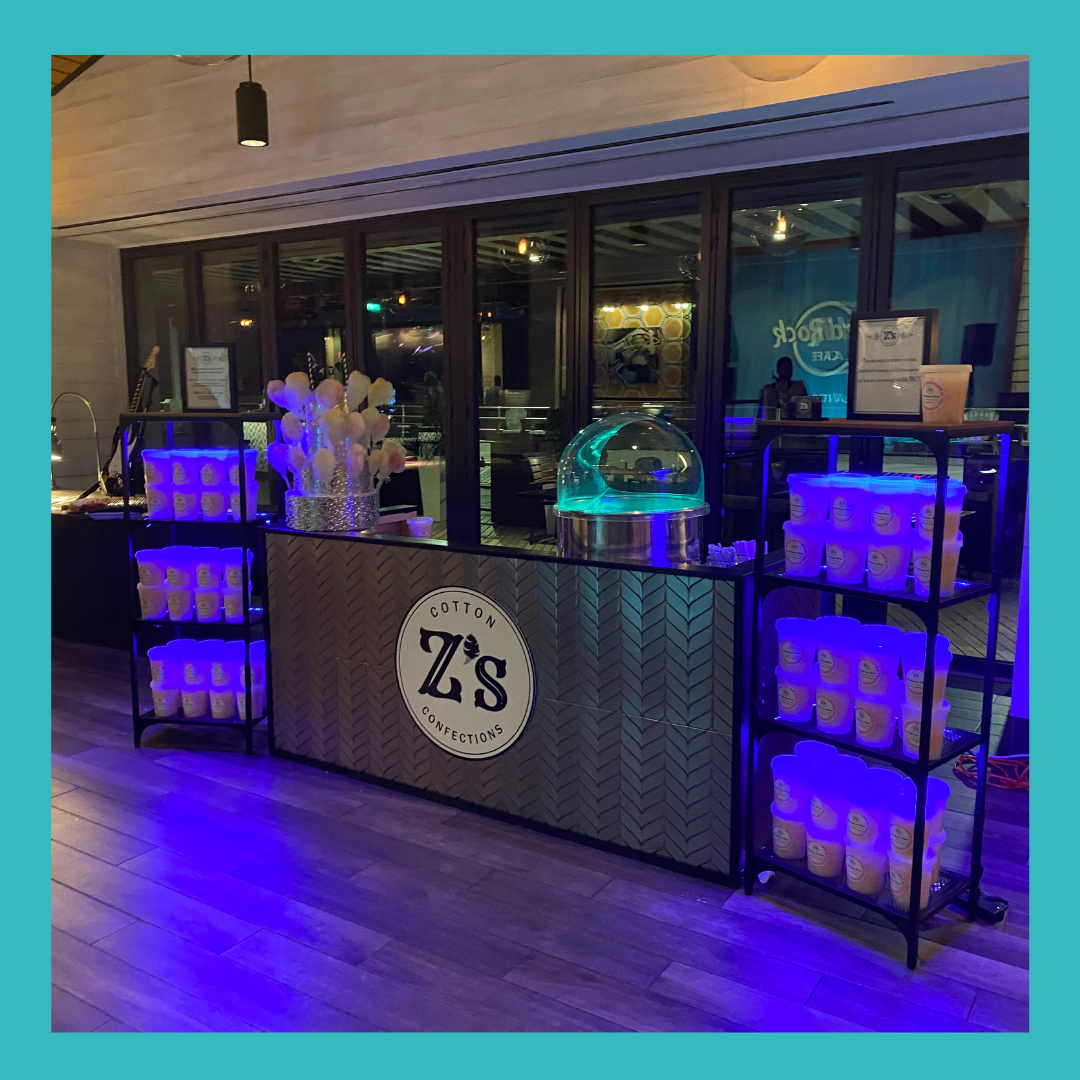 - Add a Z's Cotton Confections "cake" display for your guests to grab and enjoy at their leisure.