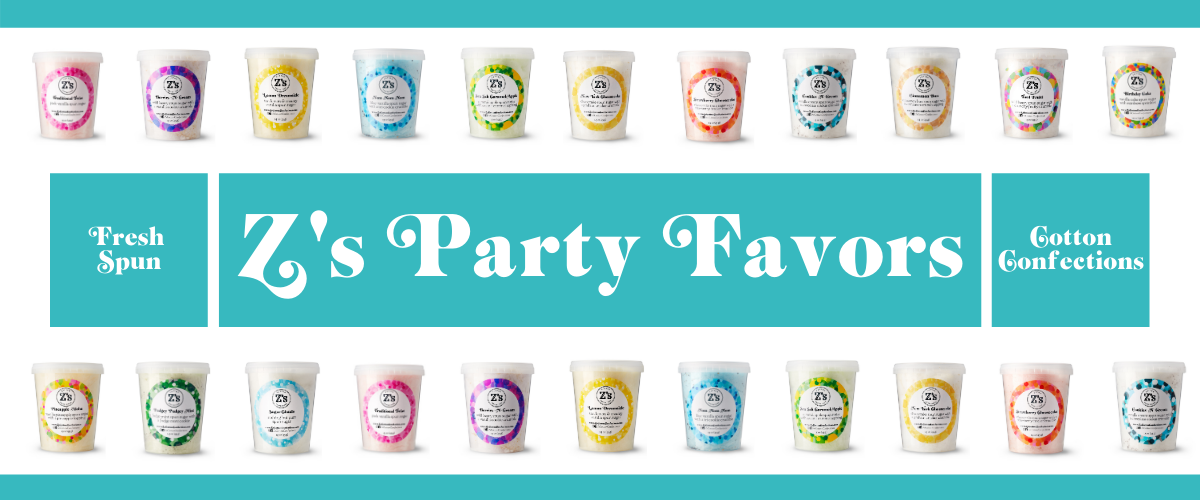 Z's Cotton Confections make the perfect party favor! With custom labels and flavors, Z's Party Favors are sure to impress your guests even after they've gone home! Get in touch with us now to learn more.